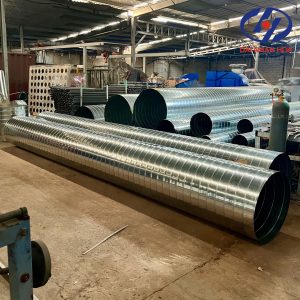 Ống gió tròn xoắn không phải là ống gió tròn hàn ghép thông thường mà là sản phẩm của một quy trình công nghệ cao: 1.Nguyên liệu đầu vào: Thường là dải tôn cuộn (Coil Steel) mạ kẽm (Galvanized Steel) hoặc Inox (SUS 304, 316) có chiều rộng cố định. 2.Quá trình Xoắn và Khóa mí: Dải tôn được đưa qua máy cán chuyên dụng. Máy sẽ tạo ra các nếp gấp (mí) dọc theo hai cạnh của dải và đồng thời cuộn chúng thành hình xoắn ốc. Hai mép mí được khóa chặt lại với nhau liên tục (Spiral Lock-Seam) tạo thành một mối nối kín khít chạy dọc thân ống. 3.Kết cấu Tăng cứng: Chính các đường gân xoắn ốc chạy dài trên thân ống đóng vai trò như các thanh gia cường, tạo ra độ cứng vững vượt trội cho ống mà không cần tăng độ dày vật liệu.II. Ưu điểm Vượt trội của Ống Gió Tròn Xoắn