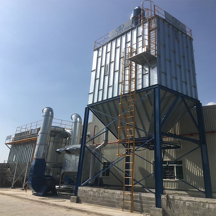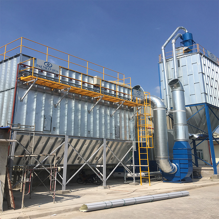 Dự án hệ thống hút bụi gỗ tại nhà máy chế biến gỗ Công ty CP Interhouse LA. Sử dụng bộ lọc chính bằng filter rung rũ khí nén 80.000m3/h.